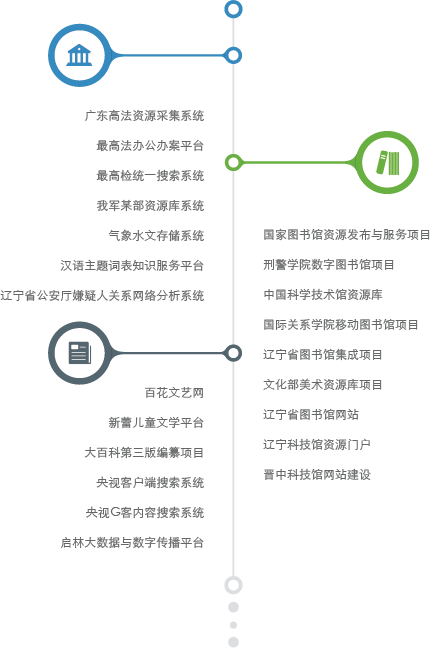 凭借多年在结构化、非结构化数字资源管理领域的深耕,利用互联网、大数据等前沿技术优势,结合政府和企业在大数据时代海量数字资源采集、存储、搜索、发布、分析应用方面的个性化需求,构筑完整的数字资源领域生态链 ,研发出针对海量数字资源全生命周期管理的系列软件产品。