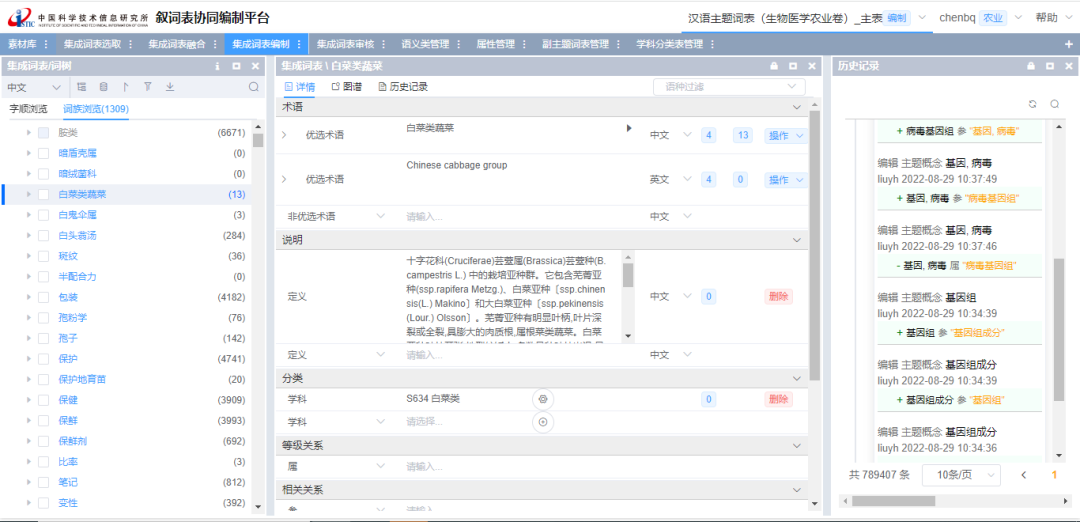 具备良好的协作管理能力、版本管理能力、统计分析能力,并能够借助大数据技术对基础词库和文献等资源深度挖掘,实现编表的辅助编写工作,能够为编写人员提供相关词汇推荐和语义关系推荐等功能,借以提高编表的效率。