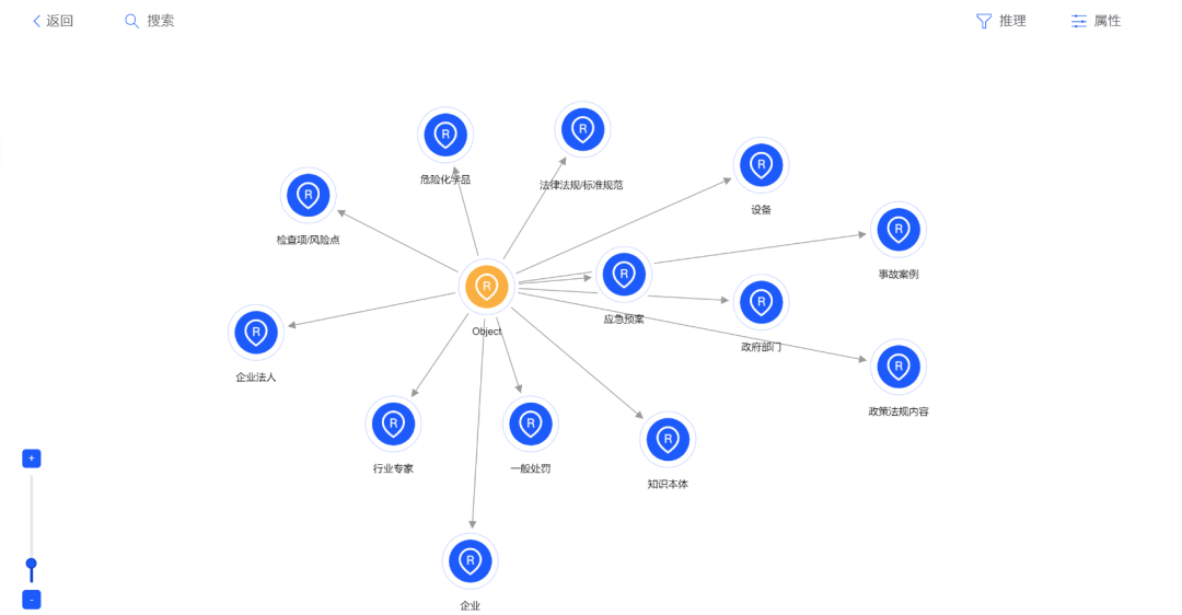 将领域内的知识本体、法律法规、标准规范、危险化学品、事故案例等知识数据进行多维度知识链接。